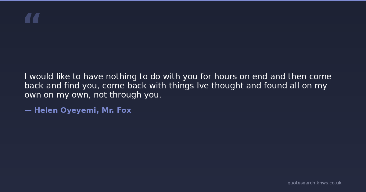 I would like to have nothing to do with you for hours on end and then come back and find you, come back with things Ive thought and found all on my own on my own, not through you.