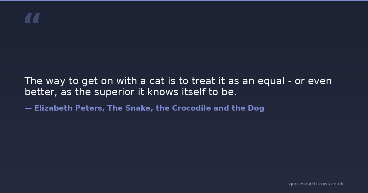 The way to get on with a cat is to treat it as an equal - or even better, as the superior it knows itself to be. cats Download Image Share on X Share on Facebook Copy Link