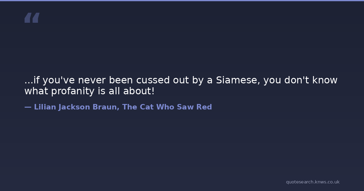 ...if you've never been cussed out by a Siamese, you don't know what profanity is all about! cats profanity swearing Download Image Share on X Share on Facebook Copy Link
