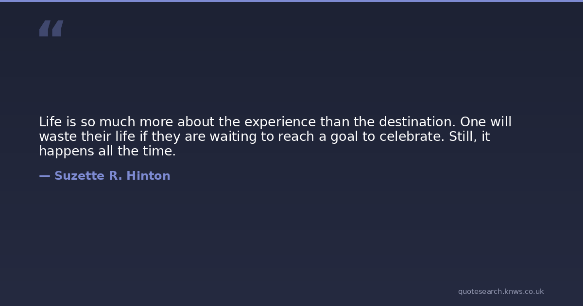 Life is so much more about the experience than the destination. One will waste their life if they are waiting to reach a goal to celebrate. Still, it happens all the time.