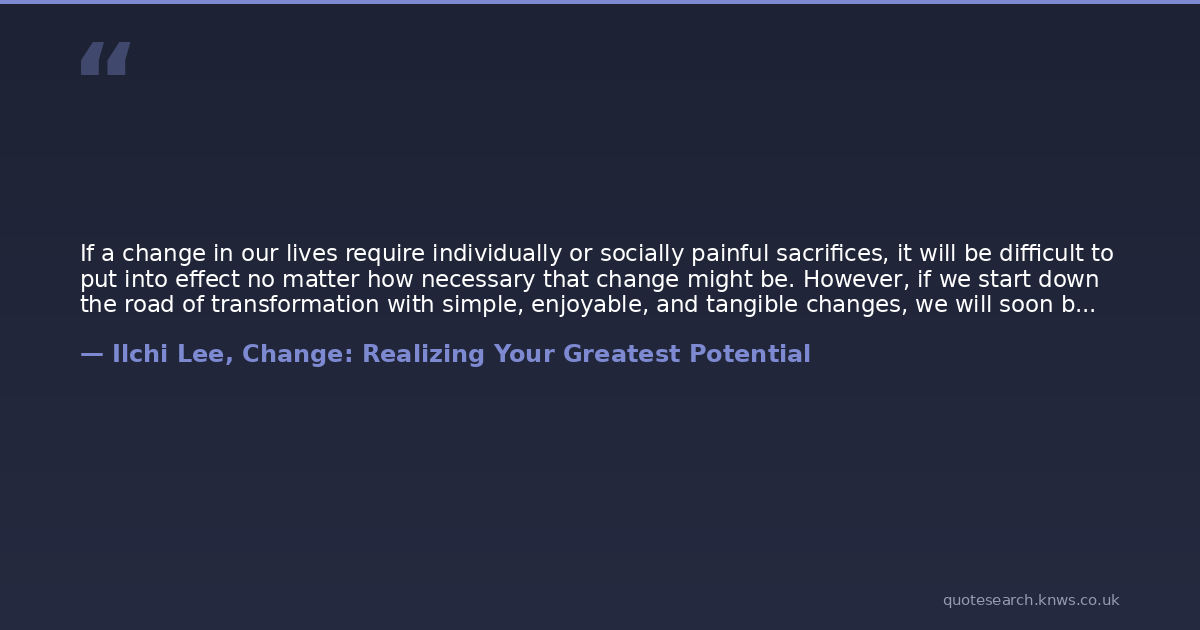 If a change in our lives require individually or socially painful sacrifices, it will be difficult to put into effect no matter how necessary that change might be. However, if we start down the road of transformation with simple, enjoyable, and tangible changes, we will soon be prepared to tackle larger issues.