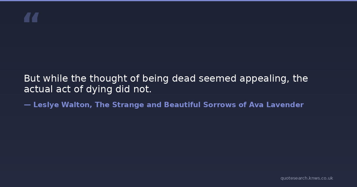 But while the thought of being dead seemed appealing, the actual act of dying did not.