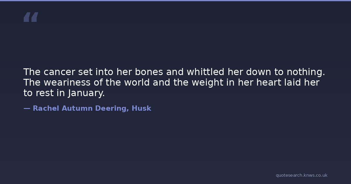The cancer set into her bones and whittled her down to nothing. The weariness of the world and the weight in her heart laid her to rest in January.