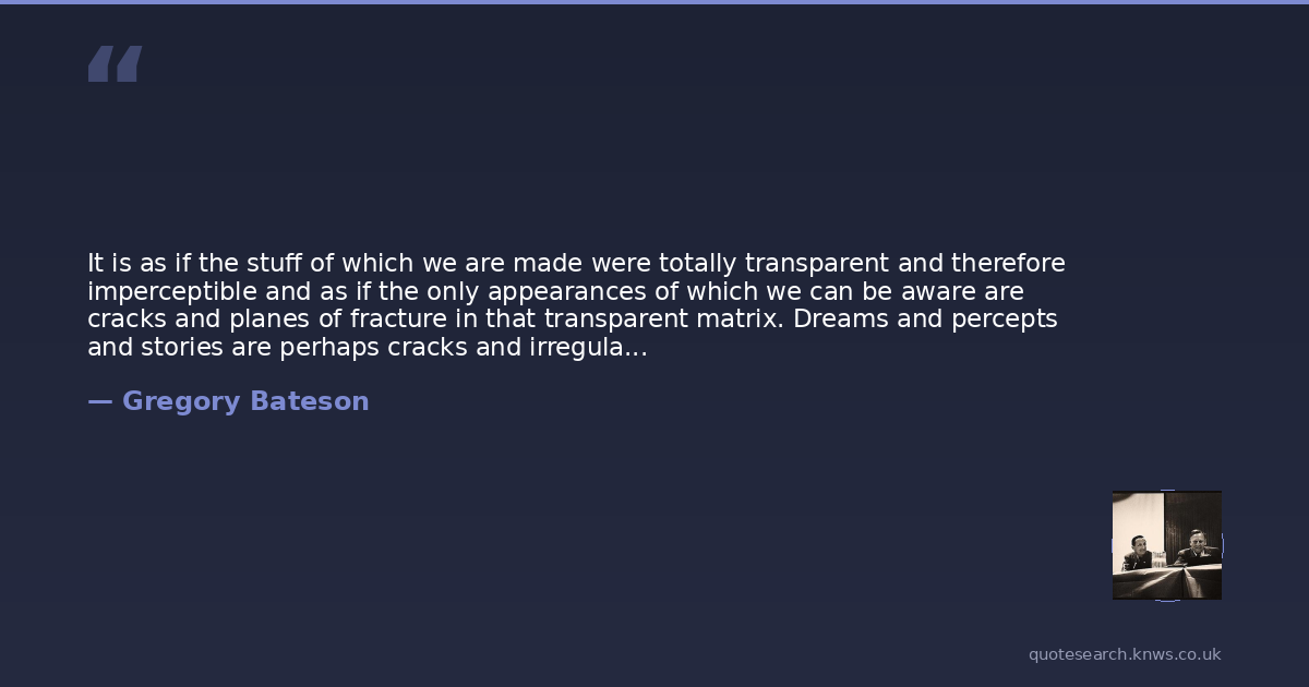 It is as if the stuff of which we are made were totally transparent and therefore imperceptible and as if the only appearances of which we can be aware are cracks and planes of fracture in that transparent matrix. Dreams and percepts and stories are perhaps cracks and irregularities in the uniform and timeless matrix. Was this what Plotinus meant by an 'invisible and unchanging beauty which pervades all things'?
