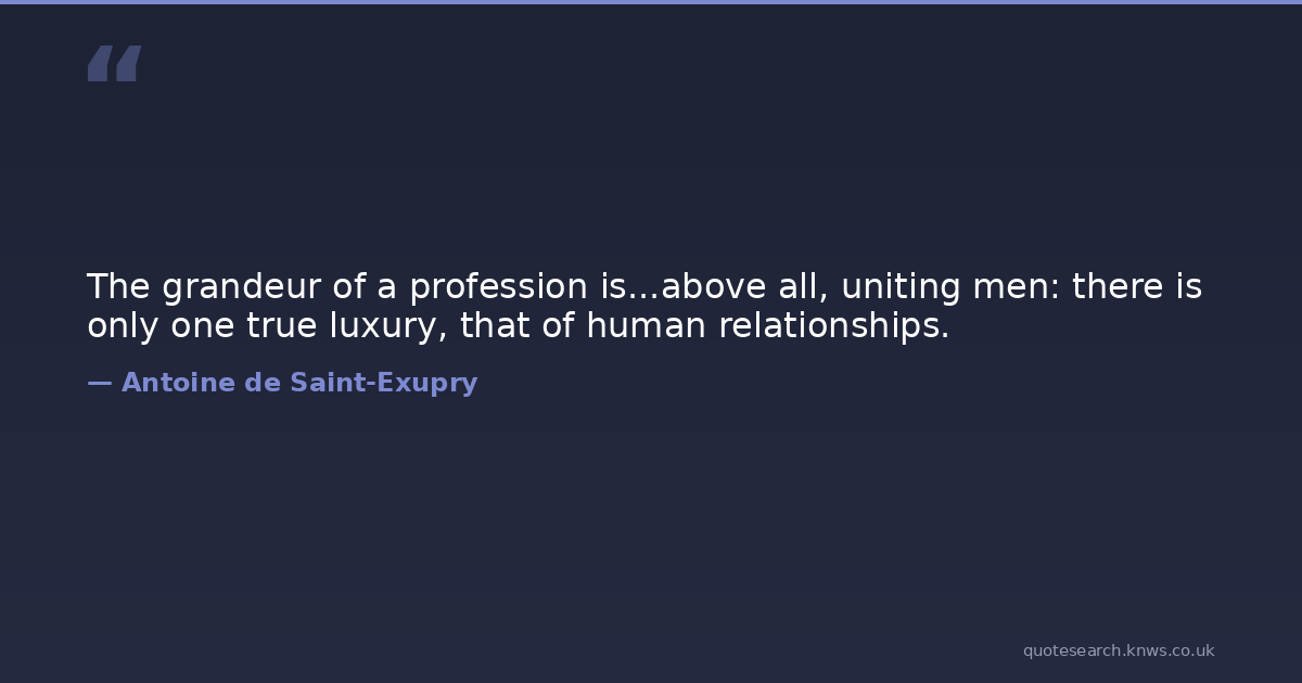 The grandeur of a profession is...above all, uniting men: there is only one true luxury, that of human relationships.