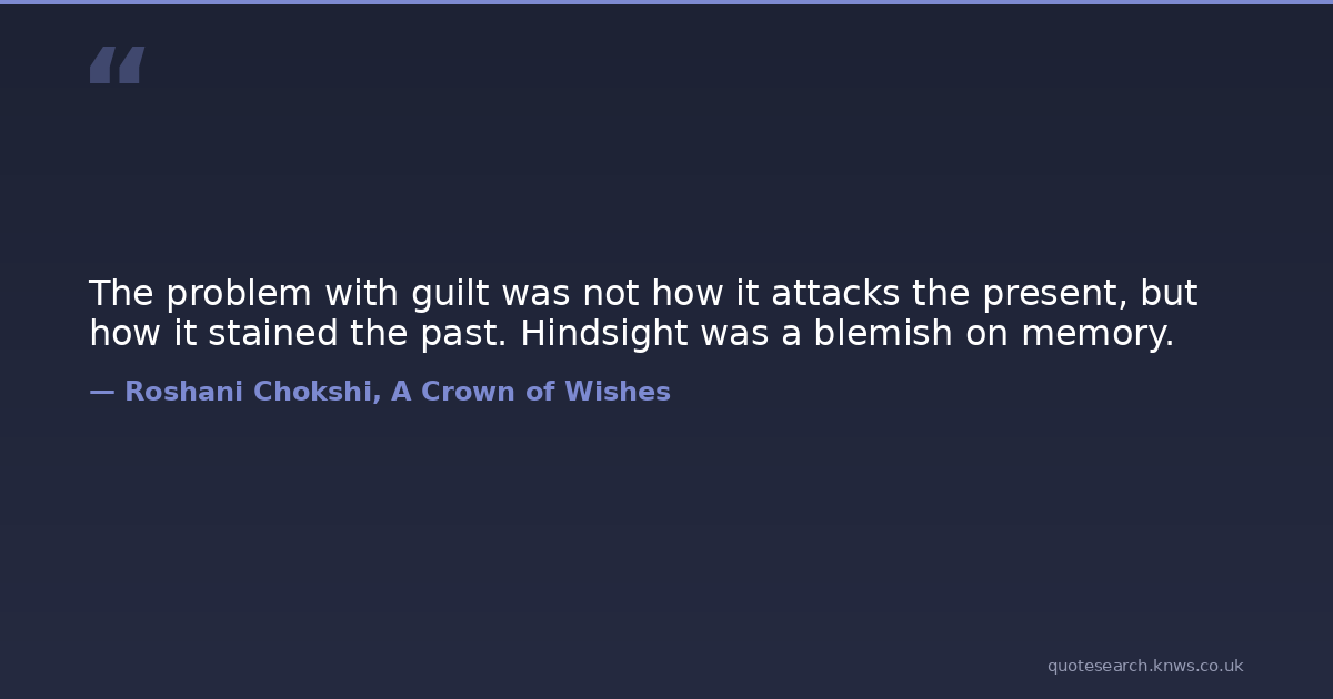 The problem with guilt was not how it attacks the present, but how it stained the past. Hindsight was a blemish on memory.