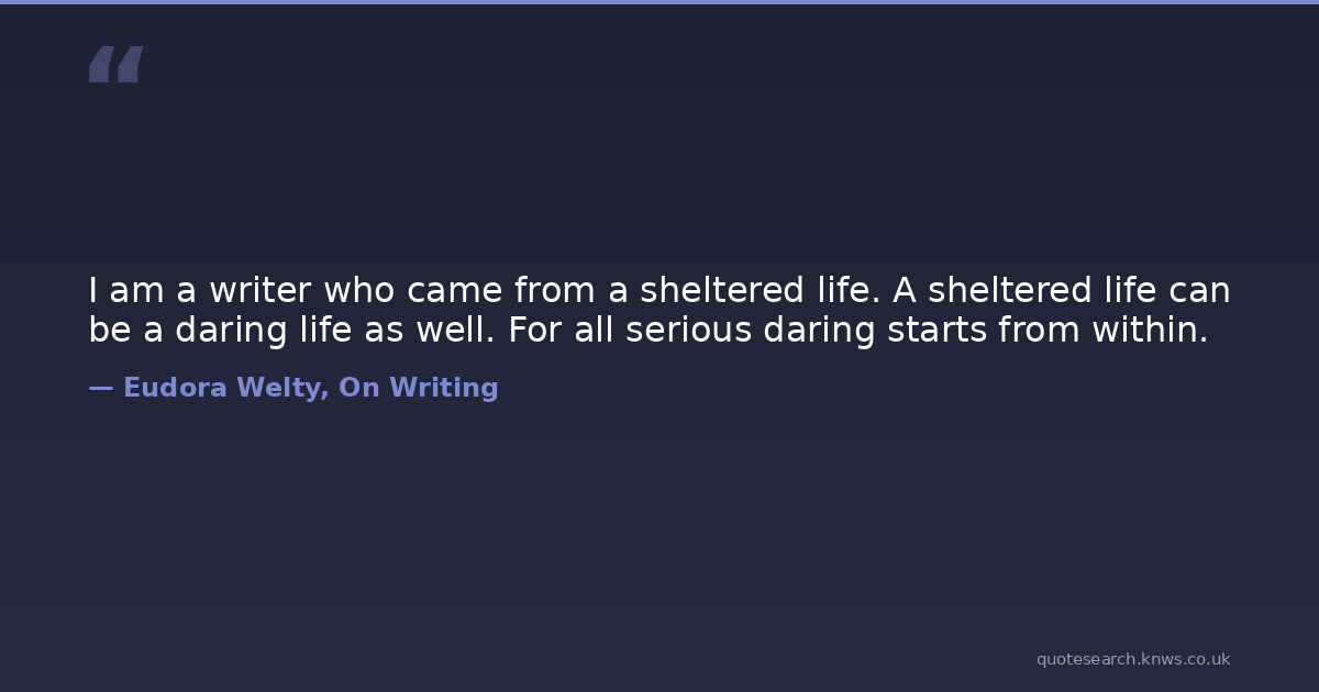I am a writer who came from a sheltered life. A sheltered life can be a daring life as well. For all serious daring starts from within.