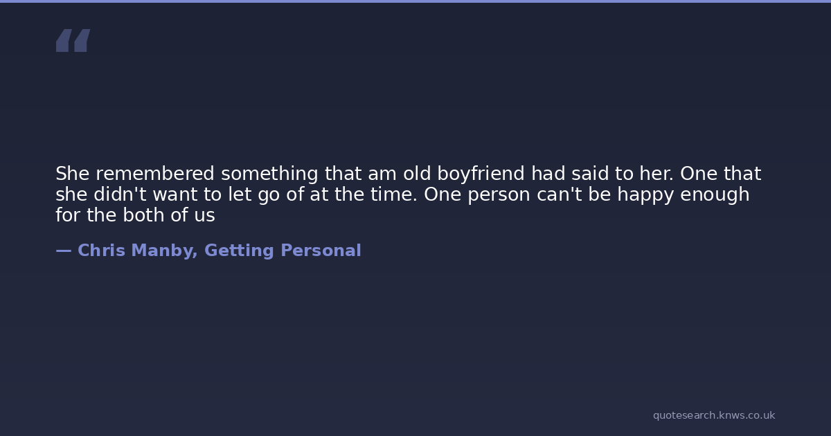 She remembered something that am old boyfriend had said to her. One that she didn't want to let go of at the time. One person can't be happy enough for the both of us