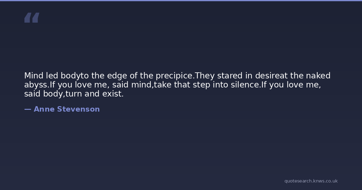 Mind led bodyto the edge of the precipice.They stared in desireat the naked abyss.If you love me, said mind,take that step into silence.If you love me, said body,turn and exist.