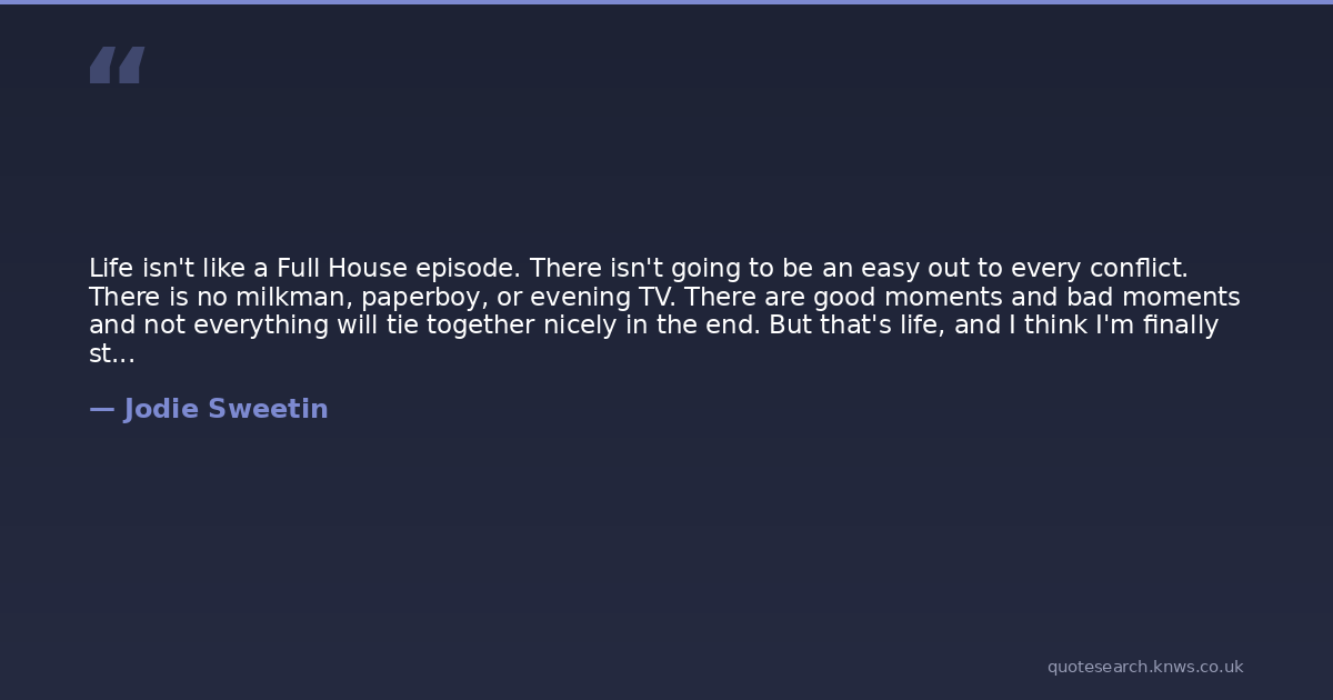 Life isn't like a Full House episode. There isn't going to be an easy out to every conflict. There is no milkman, paperboy, or evening TV. There are good moments and bad moments and not everything will tie together nicely in the end. But that's life, and I think I'm finally starting to get it.