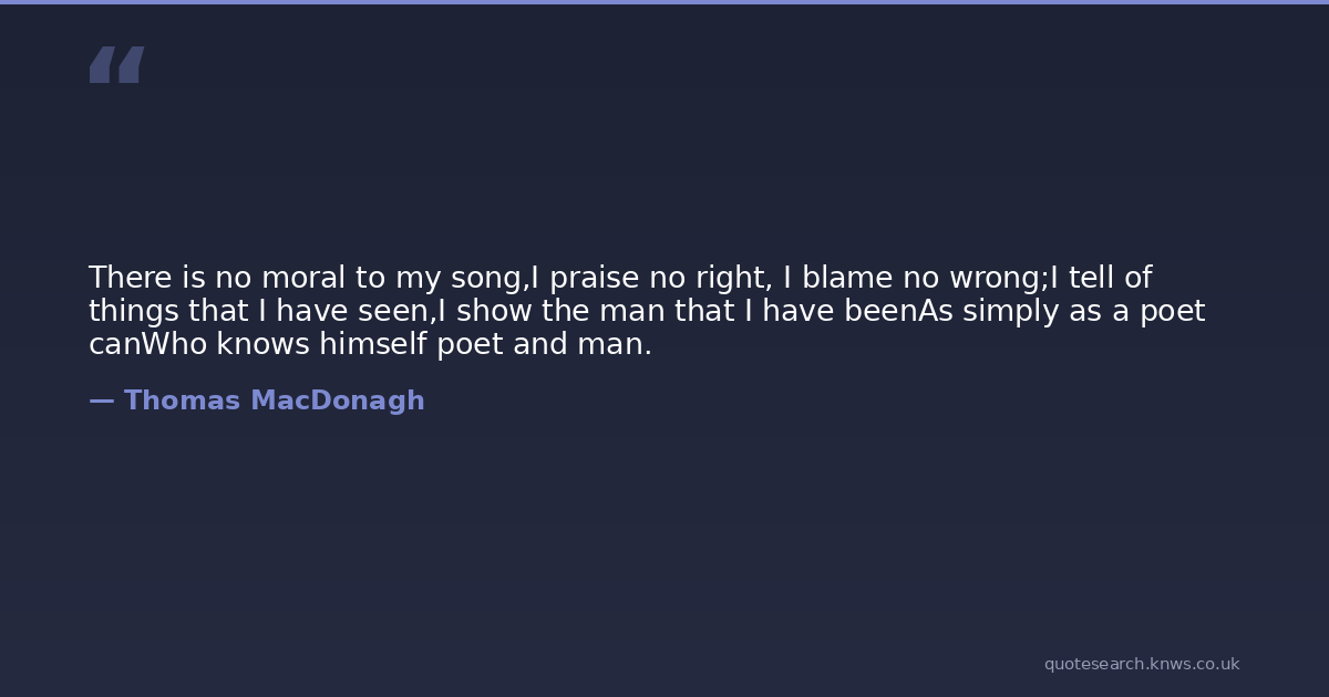 There is no moral to my song,I praise no right, I blame no wrong;I tell of things that I have seen,I show the man that I have beenAs simply as a poet canWho knows himself poet and man.