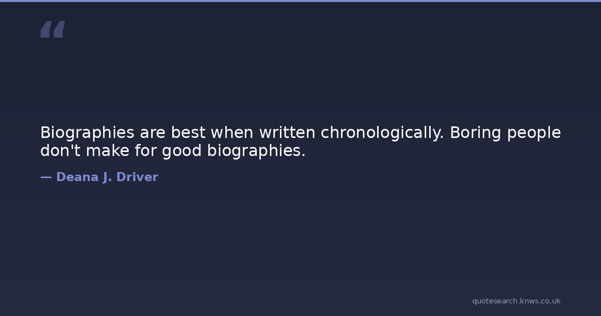 Biographies are best when written chronologically. Boring people don't make for good biographies. biographies non-fiction-books non-fiction-books-inspirational writers-on-writing writing writing-advice Download Image Share on X Share on Facebook Copy Link