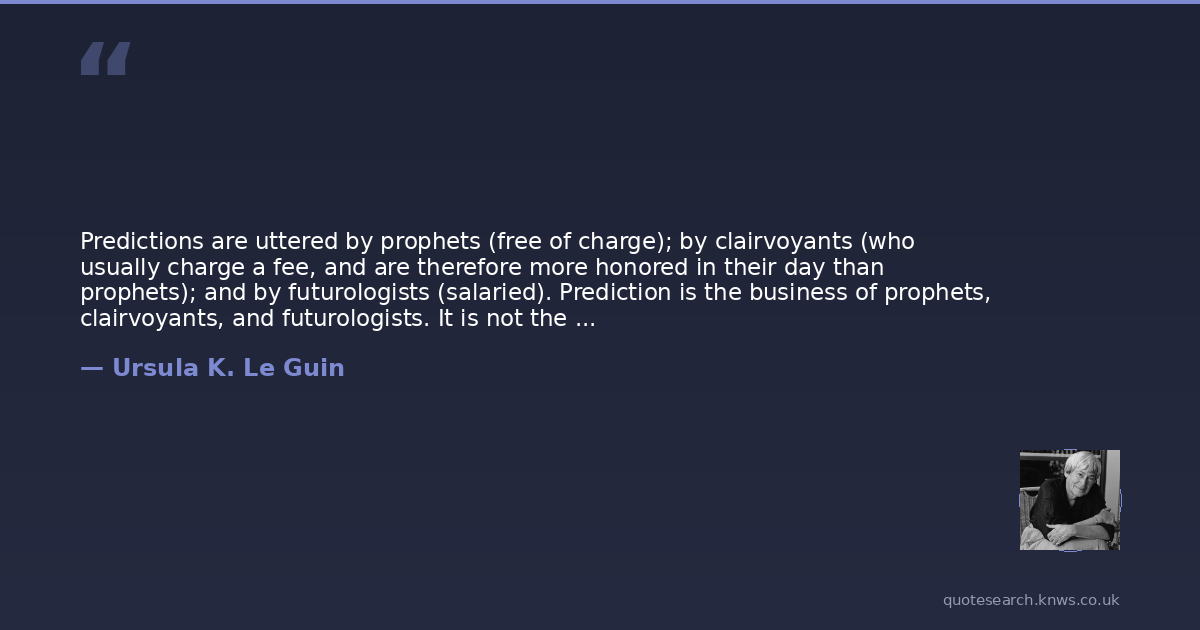 Predictions are uttered by prophets (free of charge); by clairvoyants (who usually charge a fee, and are therefore more honored in their day than prophets); and by futurologists (salaried). Prediction is the business of prophets, clairvoyants, and futurologists. It is not the business of novelists. A novelist's business is lying.