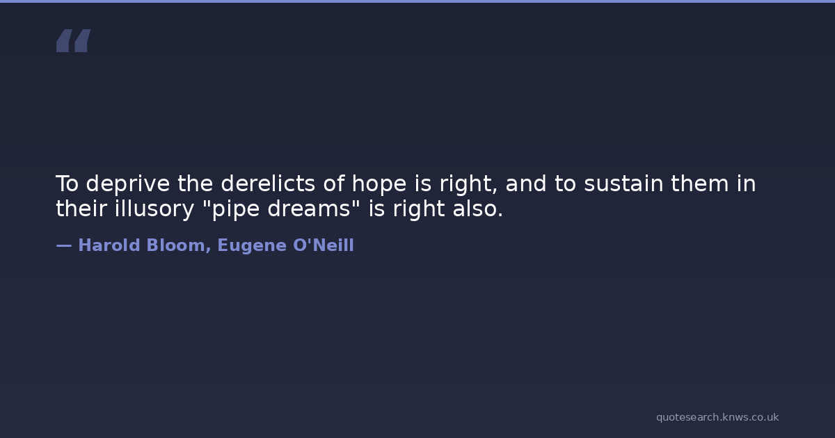 To deprive the derelicts of hope is right, and to sustain them in their illusory "pipe dreams" is right also. drama literary-criticism the-iceman-cometh tragedy Download Image Share on X Share on Facebook Copy Link