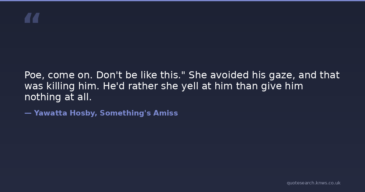 Poe, come on. Don't be like this." She avoided his gaze, and that was killing him. He'd rather she yell at him than give him nothing at all.