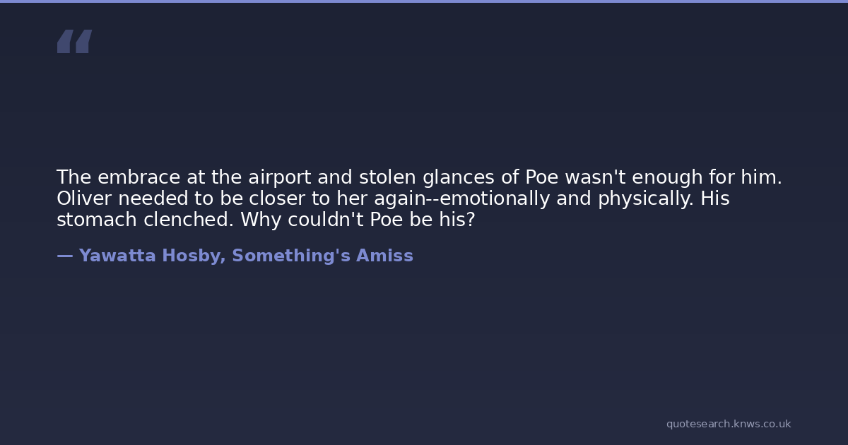 The embrace at the airport and stolen glances of Poe wasn't enough for him. Oliver needed to be closer to her again--emotionally and physically. His stomach clenched. Why couldn't Poe be his?