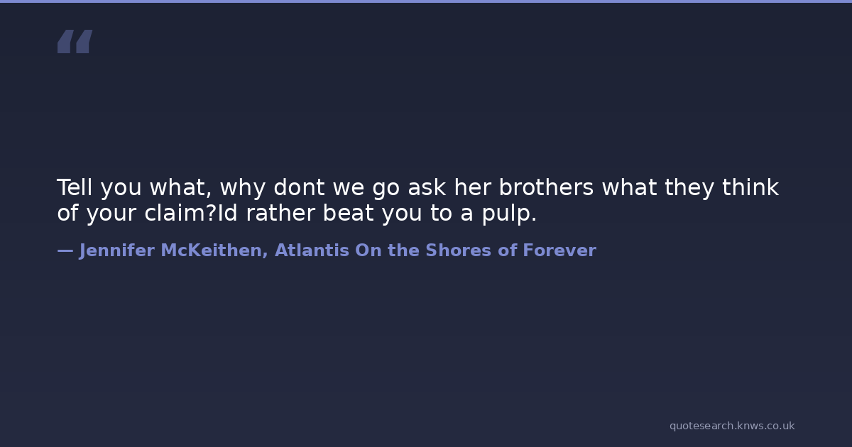 Tell you what, why dont we go ask her brothers what they think of your claim?Id rather beat you to a pulp.