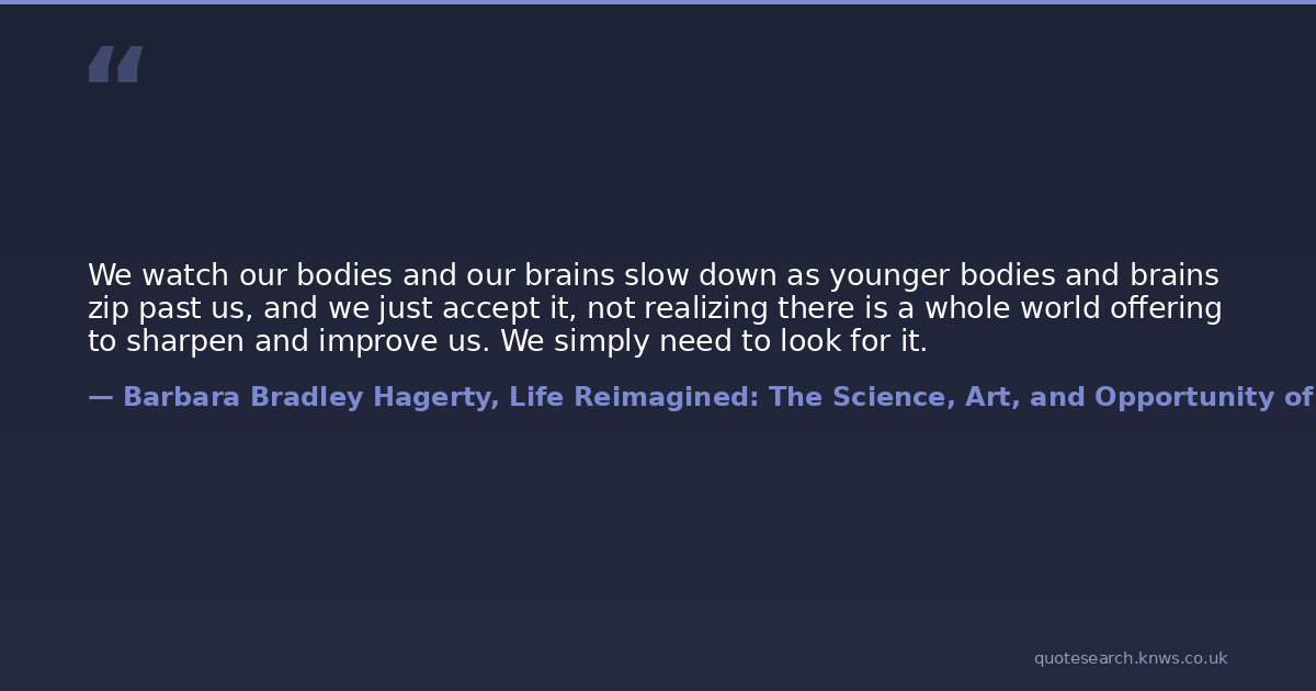 We watch our bodies and our brains slow down as younger bodies and brains zip past us, and we just accept it, not realizing there is a whole world offering to sharpen and improve us. We simply need to look for it.