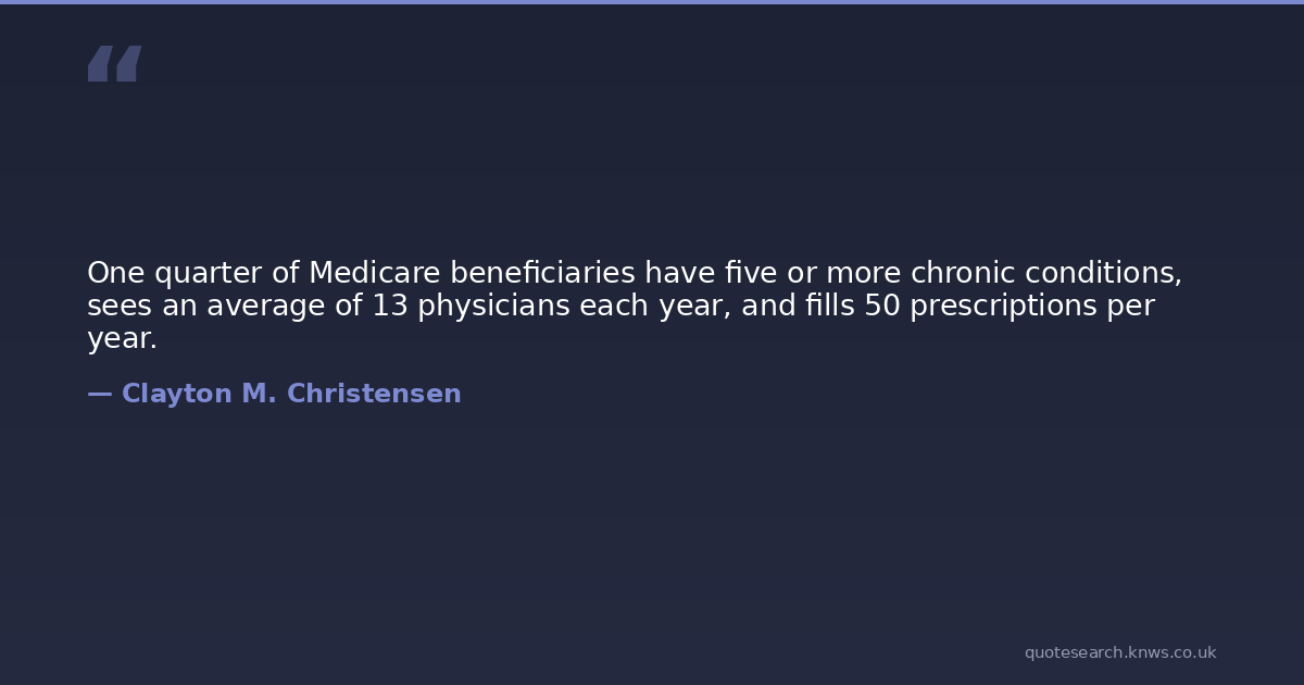 One quarter of Medicare beneficiaries have five or more chronic conditions, sees an average of 13 physicians each year, and fills 50 prescriptions per year.