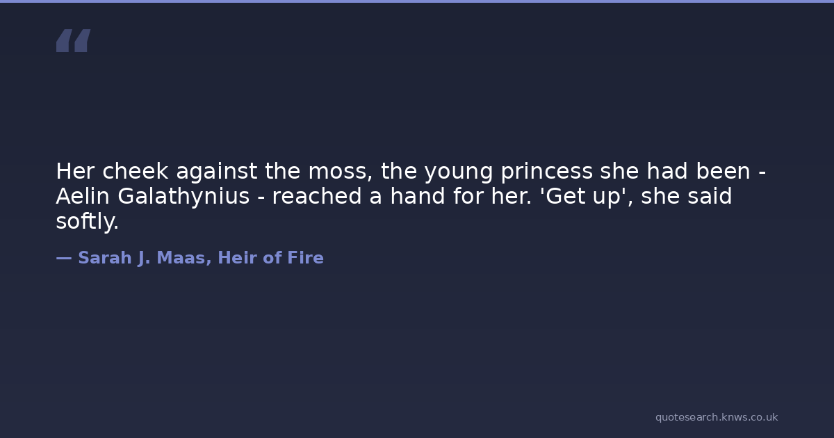 Her cheek against the moss, the young princess she had been - Aelin Galathynius - reached a hand for her. 'Get up', she said softly.