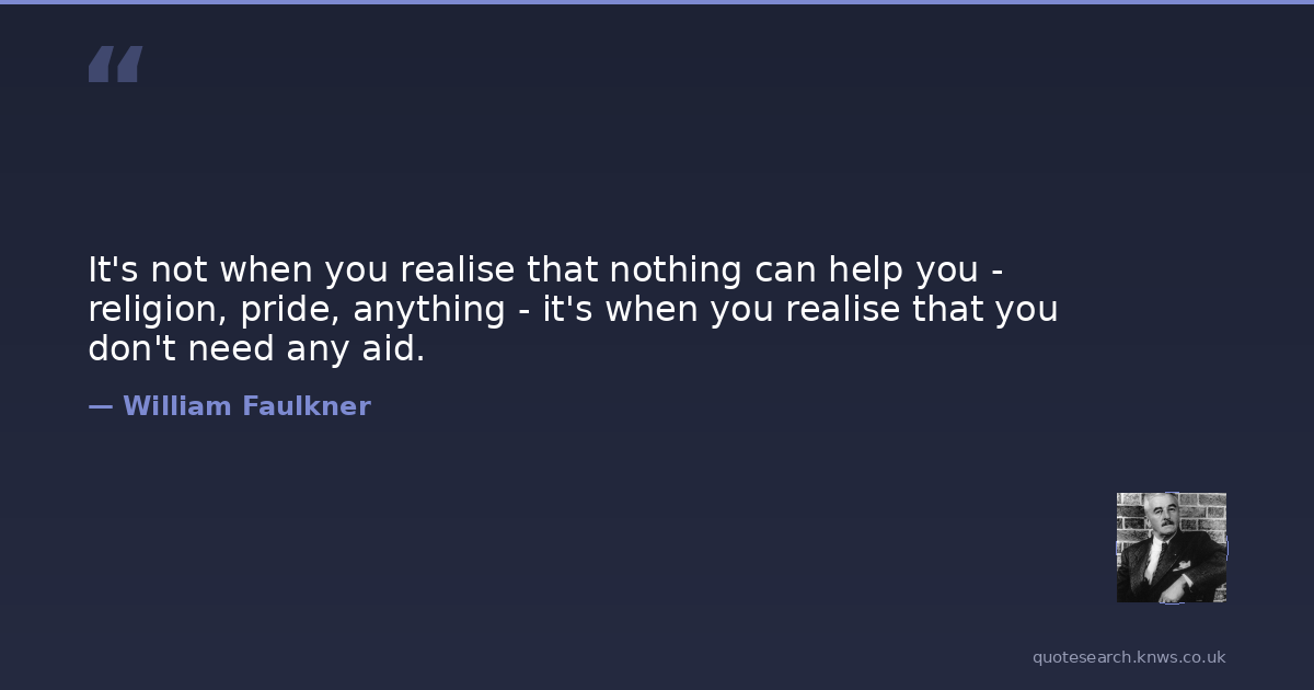 It's not when you realise that nothing can help you - religion, pride, anything - it's when you realise that you don't need any aid.
