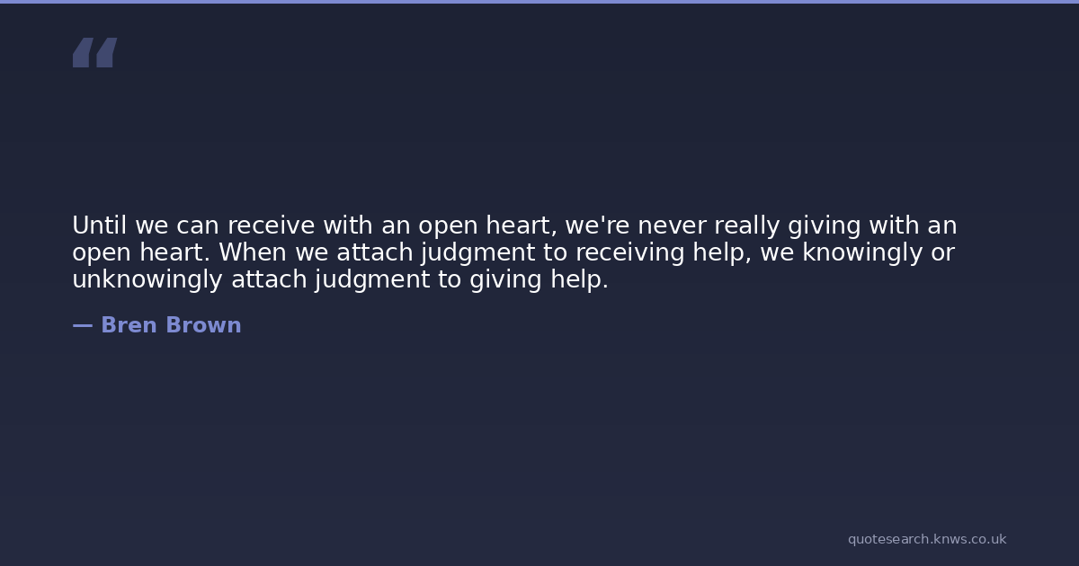 Until we can receive with an open heart, we're never really giving with an open heart. When we attach judgment to receiving help, we knowingly or unknowingly attach judgment to giving help.