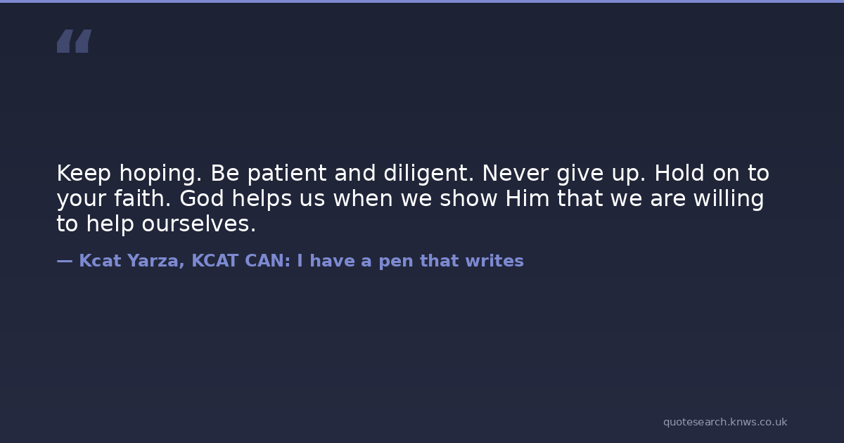 Keep hoping. Be patient and diligent. Never give up. Hold on to your faith. God helps us when we show Him that we are willing to help ourselves.