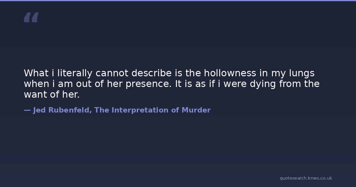 What i literally cannot describe is the hollowness in my lungs when i am out of her presence. It is as if i were dying from the want of her.