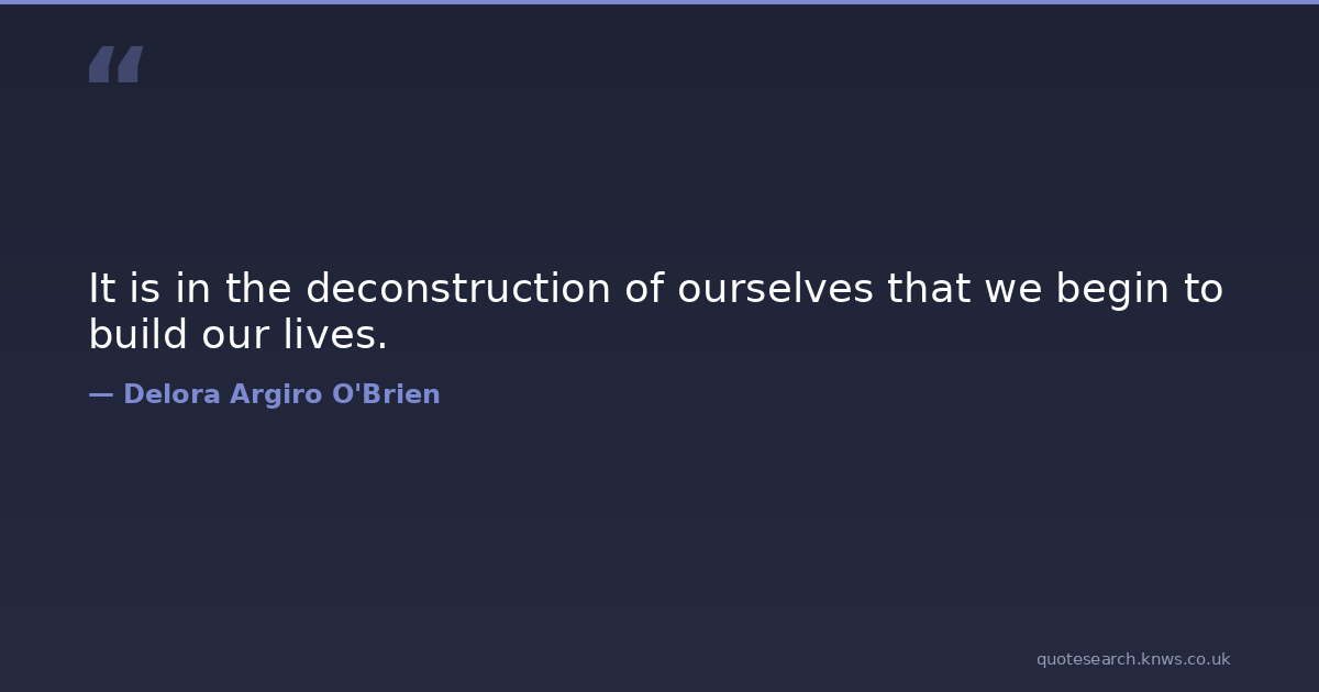 It is in the deconstruction of ourselves that we begin to build our lives. authenticity inspirational personal-development personal-growth self-help self-improvement transparency Download Image Share on X Share on Facebook Copy Link