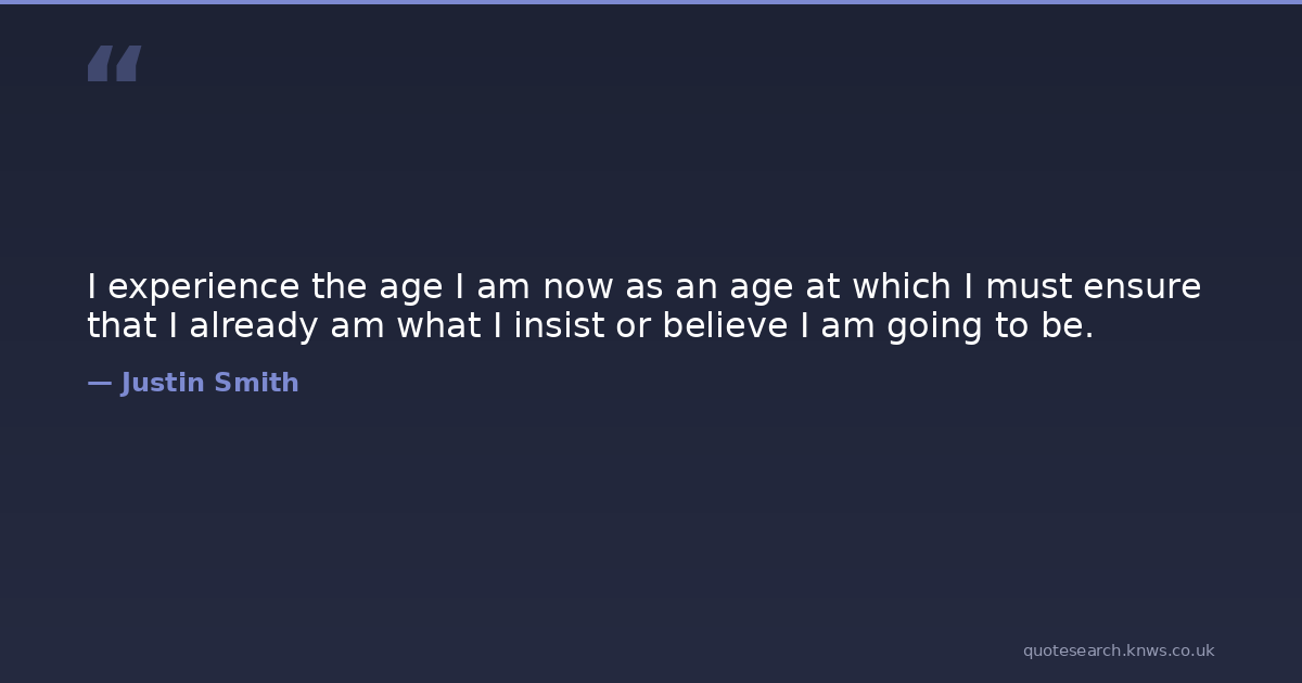 I experience the age I am now as an age at which I must ensure that I already am what I insist or believe I am going to be.