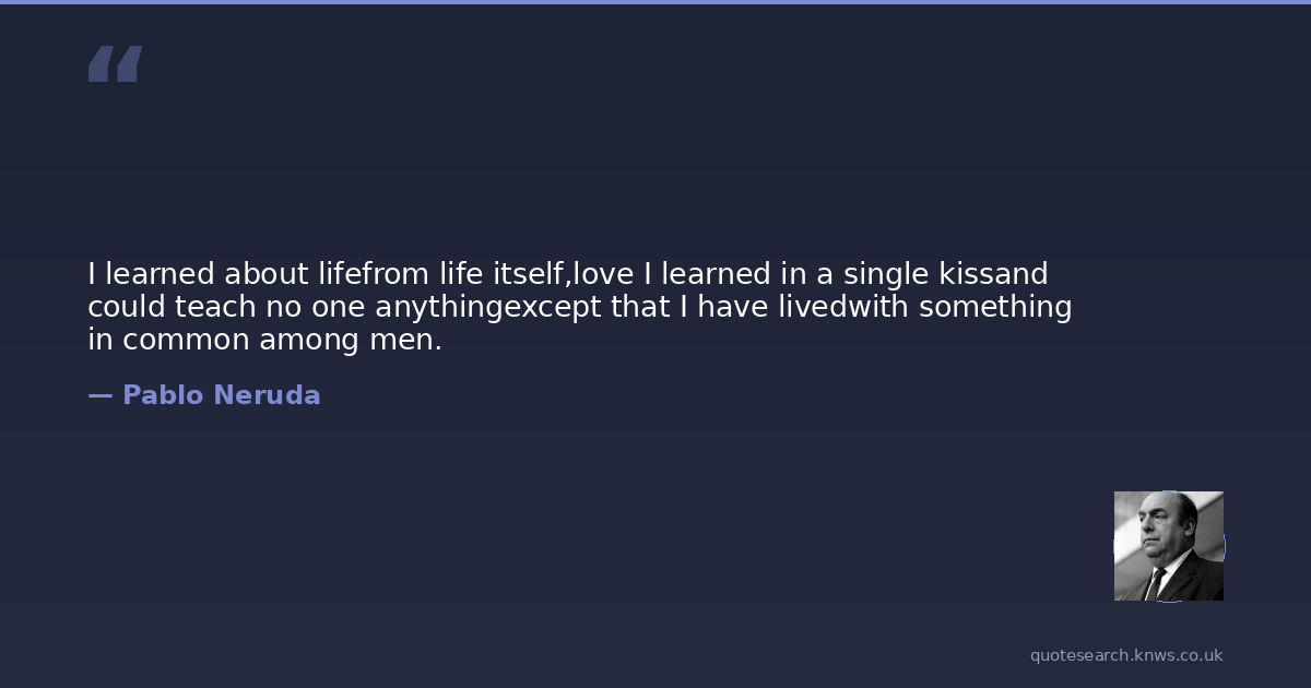 I learned about lifefrom life itself,love I learned in a single kissand could teach no one anythingexcept that I have livedwith something in common among men.