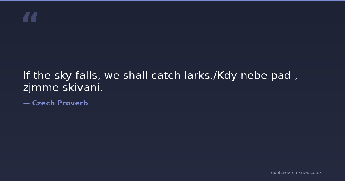 If the sky falls, we shall catch larks./Kdy nebe pad , zjmme skivani.