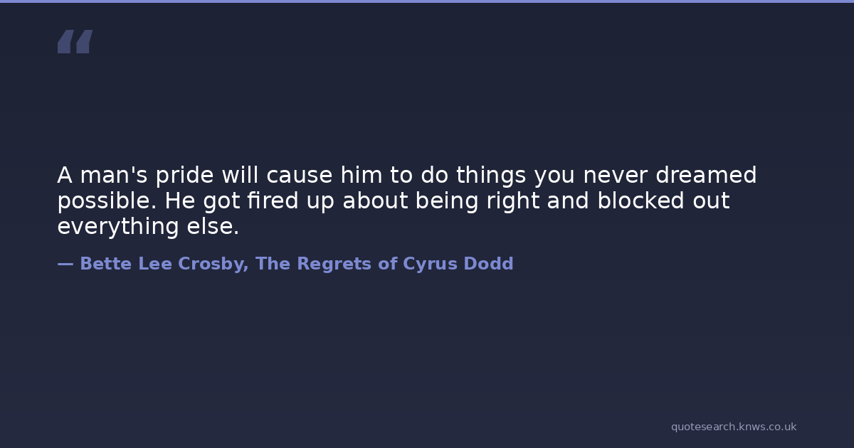 A man's pride will cause him to do things you never dreamed possible. He got fired up about being right and blocked out everything else.