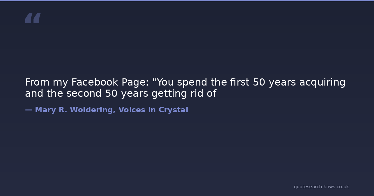 From my Facebook Page: "You spend the first 50 years acquiring and the second 50 years getting rid of historical-fiction science-fiction-fantasy Download Image Share on X Share on Facebook Copy Link