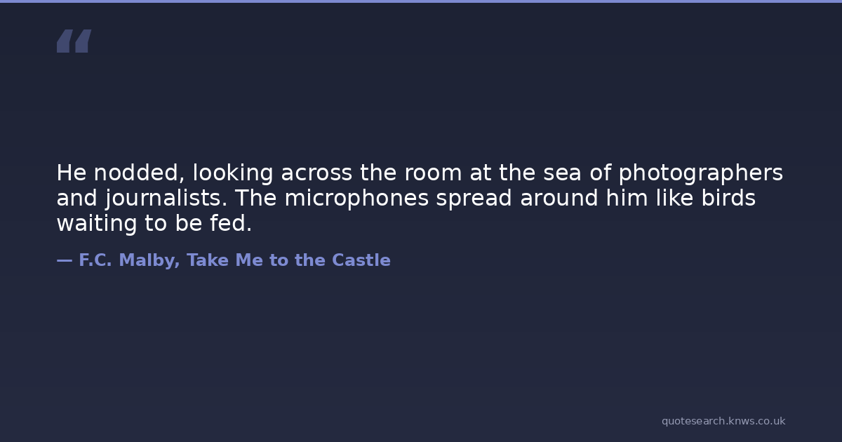 He nodded, looking across the room at the sea of photographers and journalists. The microphones spread around him like birds waiting to be fed.