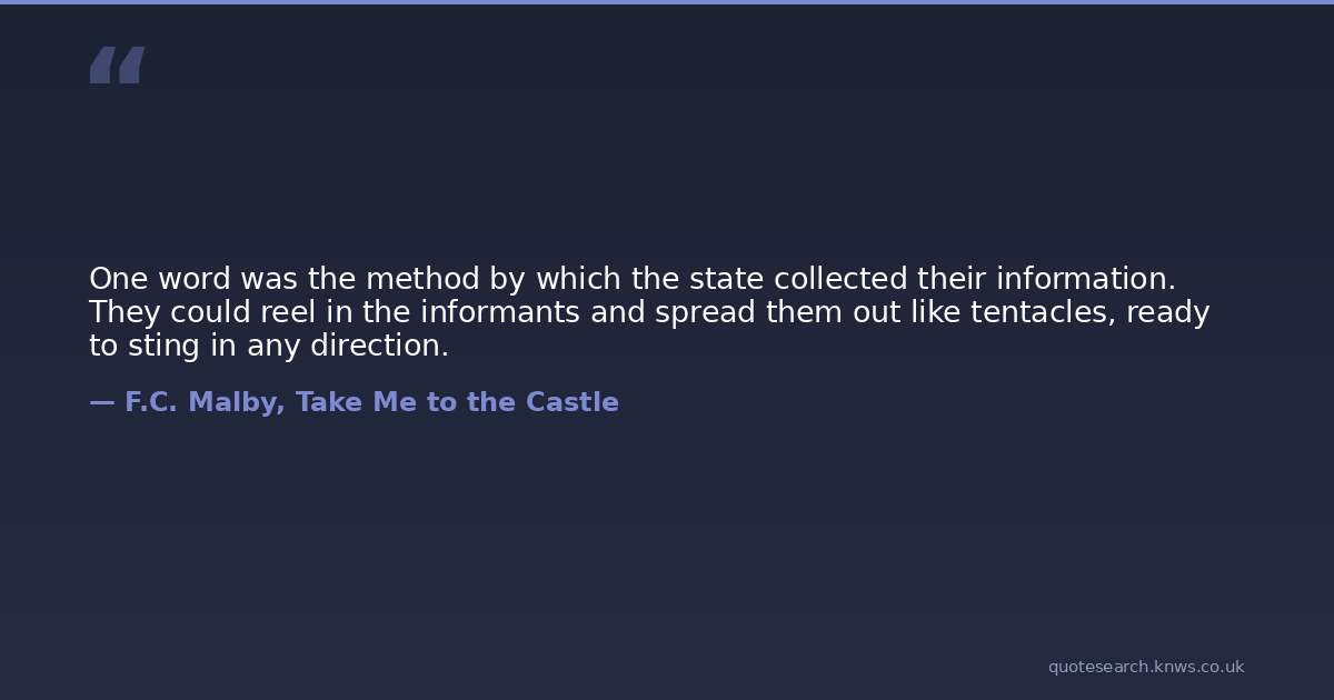 One word was the method by which the state collected their information. They could reel in the informants and spread them out like tentacles, ready to sting in any direction.