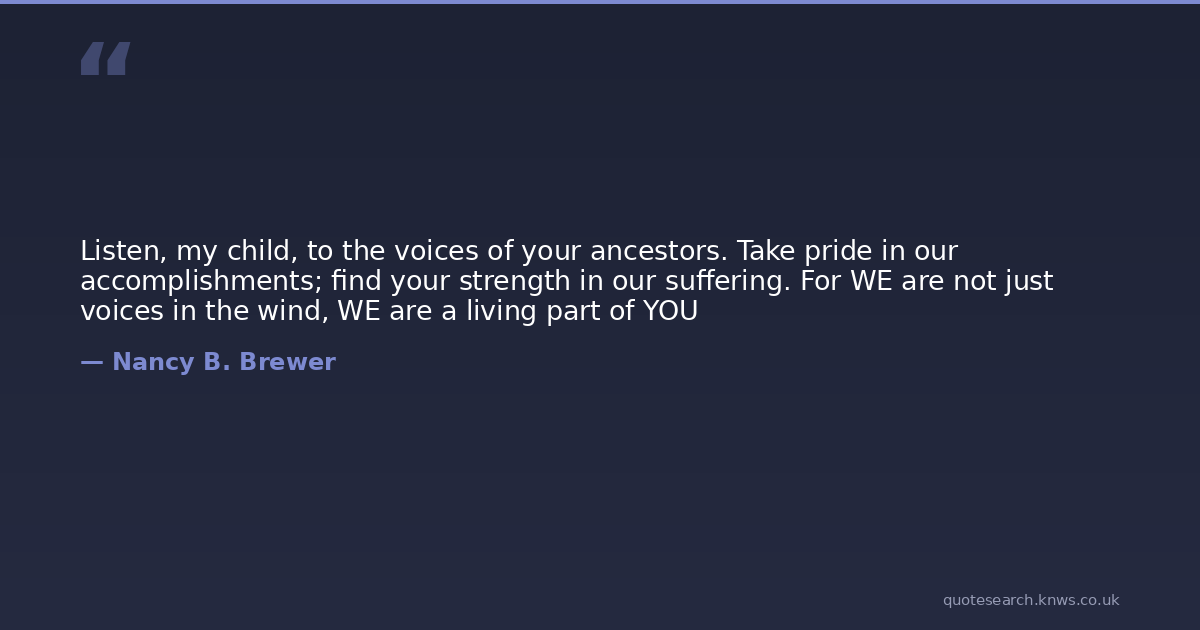 Listen, my child, to the voices of your ancestors. Take pride in our accomplishments; find your strength in our suffering. For WE are not just voices in the wind, WE are a living part of YOU