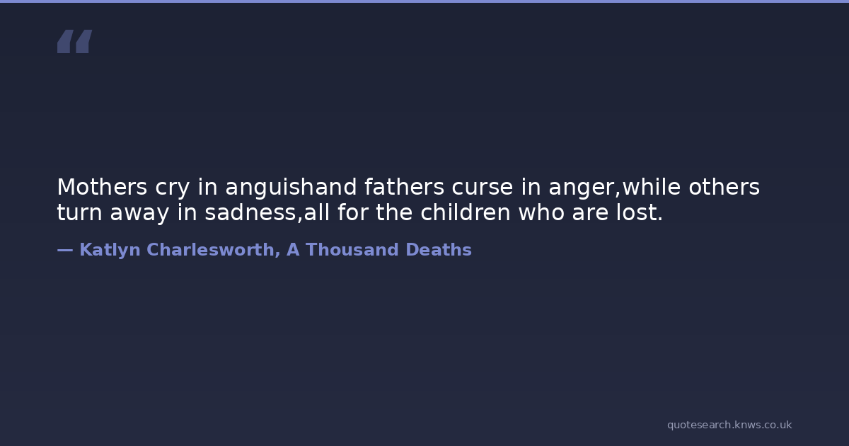 Mothers cry in anguishand fathers curse in anger,while others turn away in sadness,all for the children who are lost. edo-period historical-fiction japan Download Image Share on X Share on Facebook Copy Link