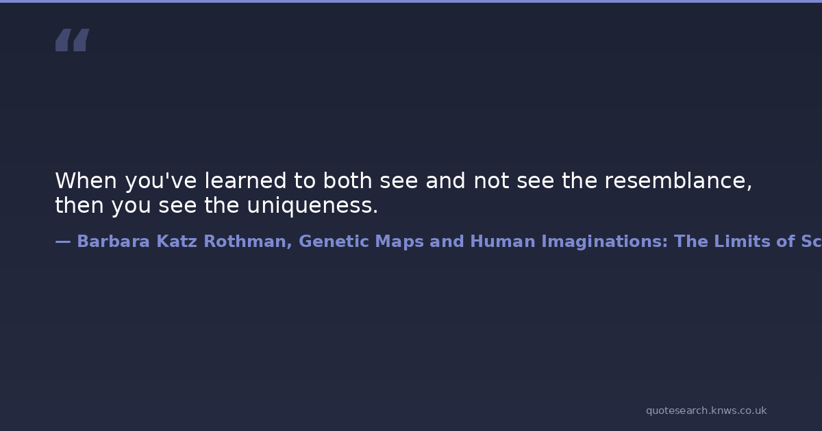 When you've learned to both see and not see the resemblance, then you see the uniqueness. race seeing-things-in-a-different-way uniqueness uniqueness-of-individual Download Image Share on X Share on Facebook Copy Link
