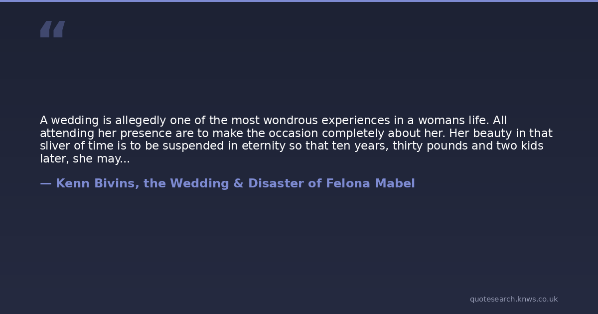 A wedding is allegedly one of the most wondrous experiences in a womans life. All attending her presence are to make the occasion completely about her. Her beauty in that sliver of time is to be suspended in eternity so that ten years, thirty pounds and two kids later, she may sigh at the princess she once was.