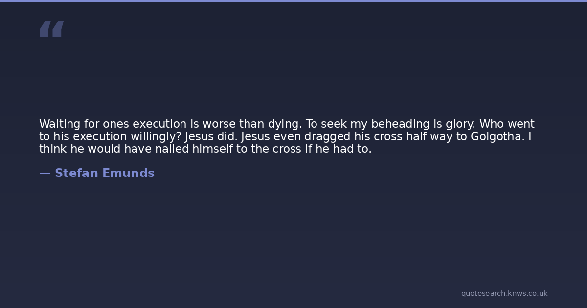 Waiting for ones execution is worse than dying. To seek my beheading is glory. Who went to his execution willingly? Jesus did. Jesus even dragged his cross half way to Golgotha. I think he would have nailed himself to the cross if he had to.
