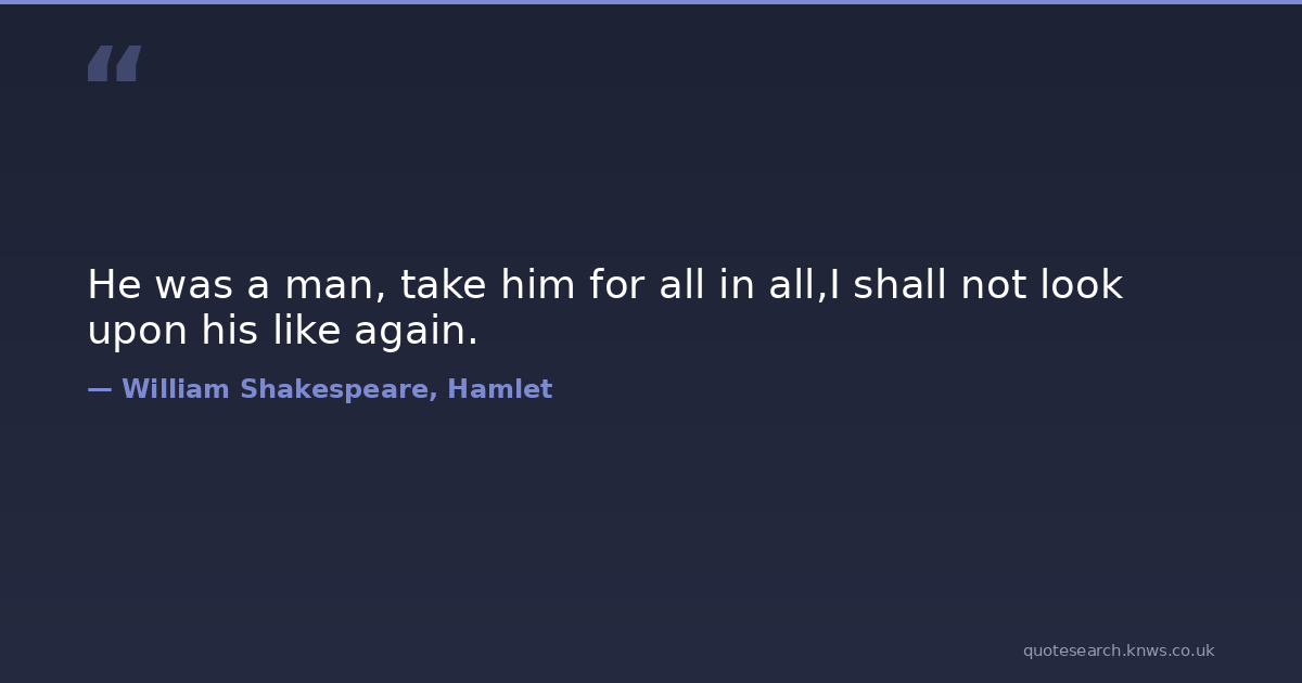 He was a man, take him for all in all,I shall not look upon his like again.