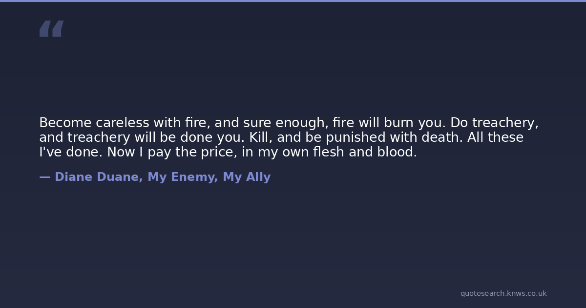 Become careless with fire, and sure enough, fire will burn you. Do treachery, and treachery will be done you. Kill, and be punished with death. All these I've done. Now I pay the price, in my own flesh and blood.