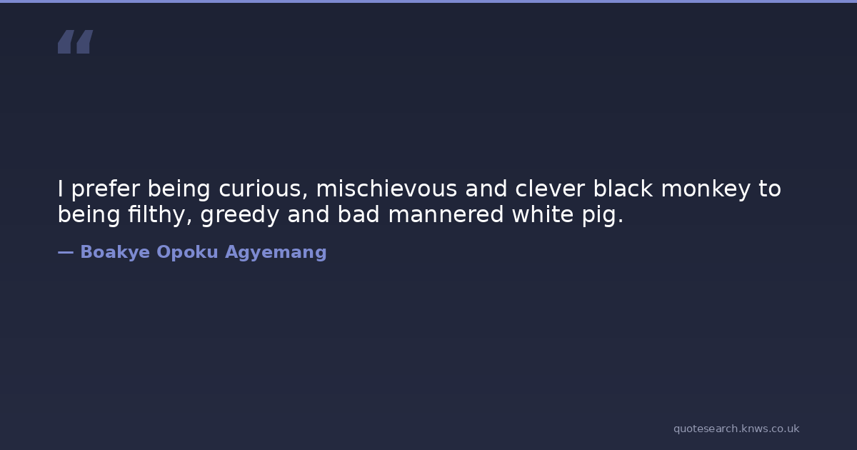 I prefer being curious, mischievous and clever black monkey to being filthy, greedy and bad mannered white pig. race Download Image Share on X Share on Facebook Copy Link