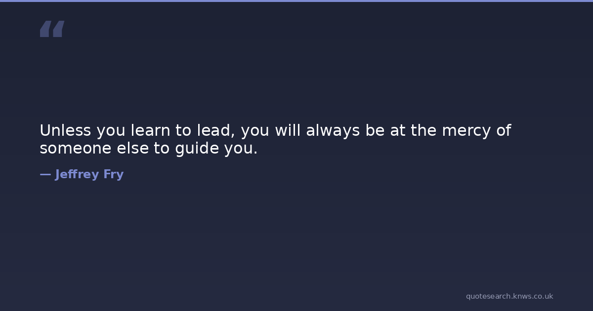 Unless you learn to lead, you will always be at the mercy of someone else to guide you. always guide lead learn mercy someone-else unless Download Image Share on X Share on Facebook Copy Link