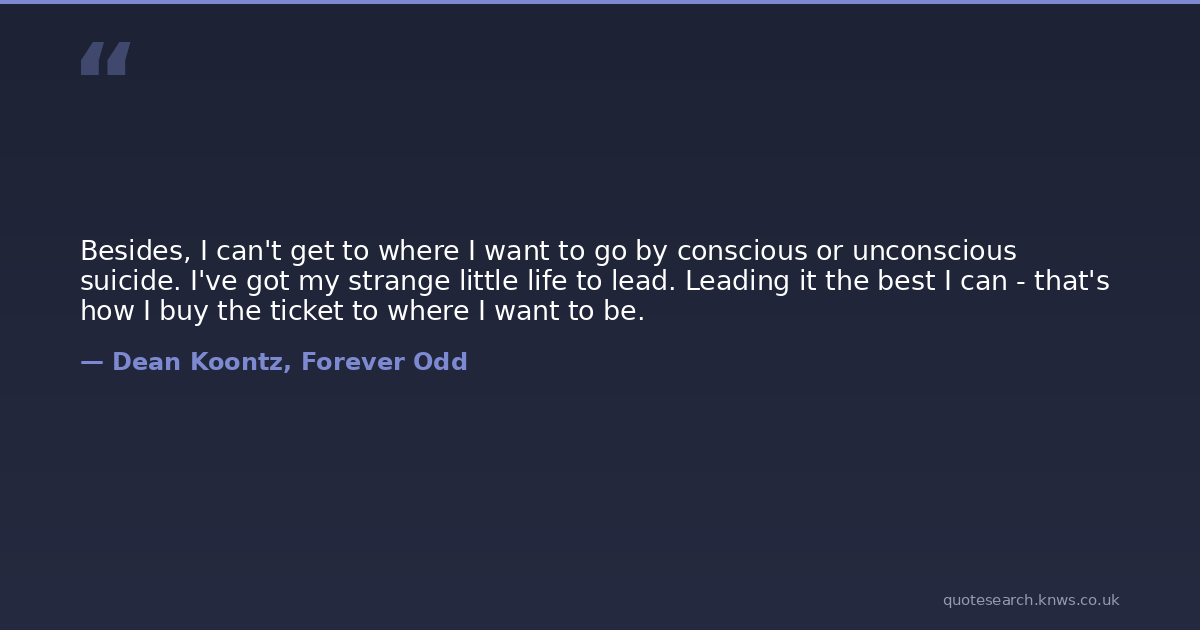 Besides, I can't get to where I want to go by conscious or unconscious suicide. I've got my strange little life to lead. Leading it the best I can - that's how I buy the ticket to where I want to be.