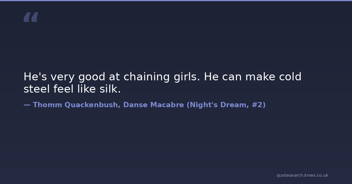 He's very good at chaining girls. He can make cold steel feel like silk.