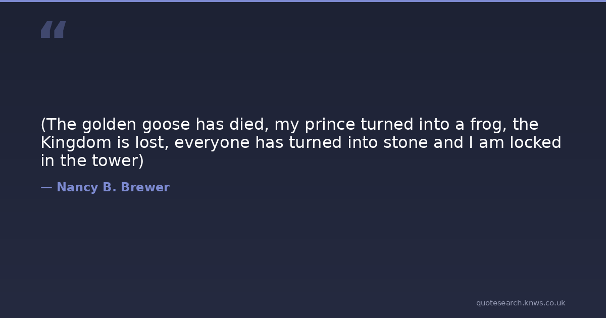 (The golden goose has died, my prince turned into a frog, the Kingdom is lost, everyone has turned into stone and I am locked in the tower)