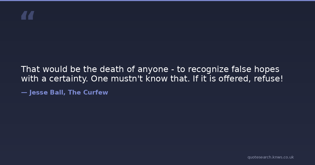 That would be the death of anyone - to recognize false hopes with a certainty. One mustn't know that. If it is offered, refuse!