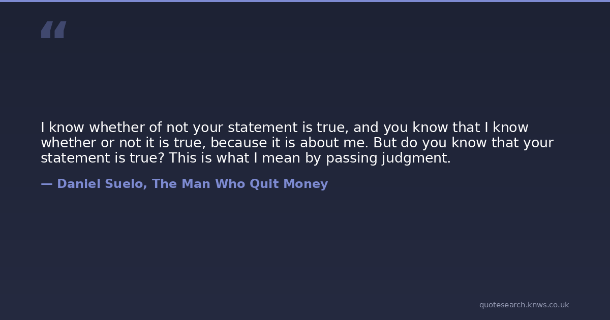 I know whether of not your statement is true, and you know that I know whether or not it is true, because it is about me. But do you know that your statement is true? This is what I mean by passing judgment.